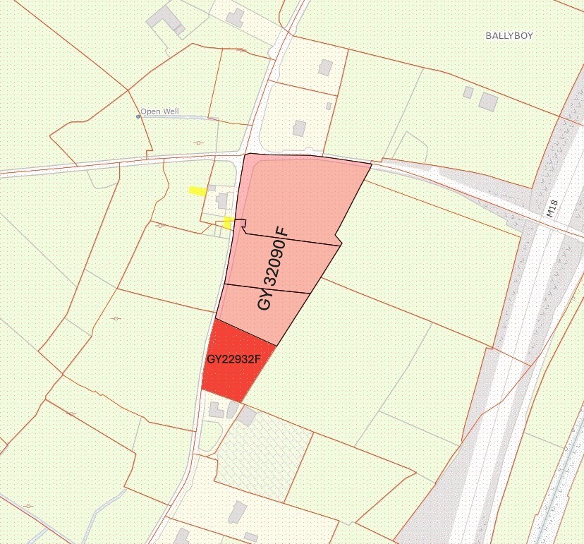 The land enjoys good road frontage on the L4513 & L4514. Located 5.9km from Gort Town (Eircode of neighbouring property H91 XFC6).