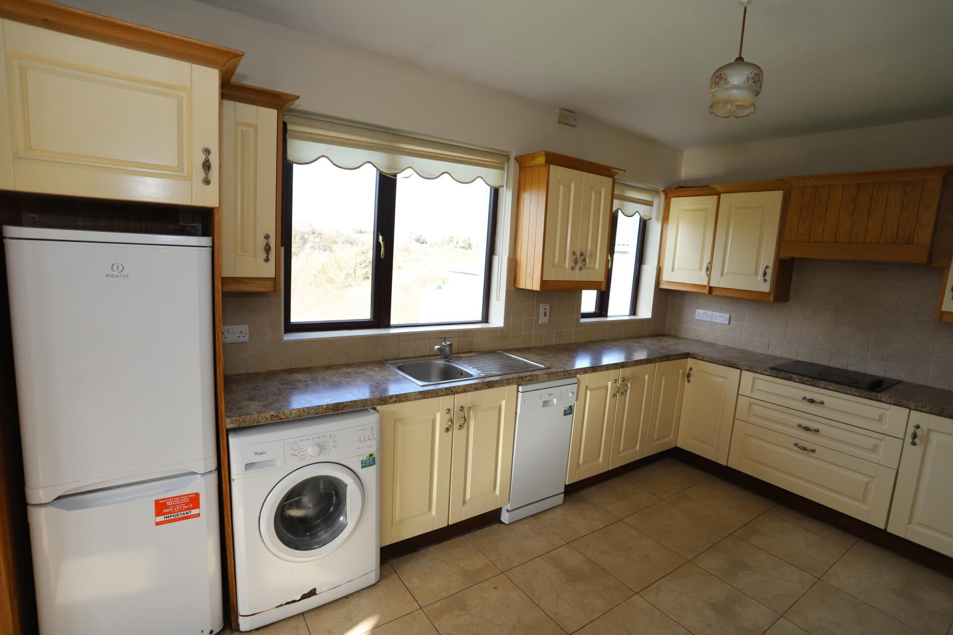 • Tiled flooring • Cream Fitted Units • Tiled Splashback • Electric oven & hob • Dishwasher • Washing Machine • Fridge/Freezer