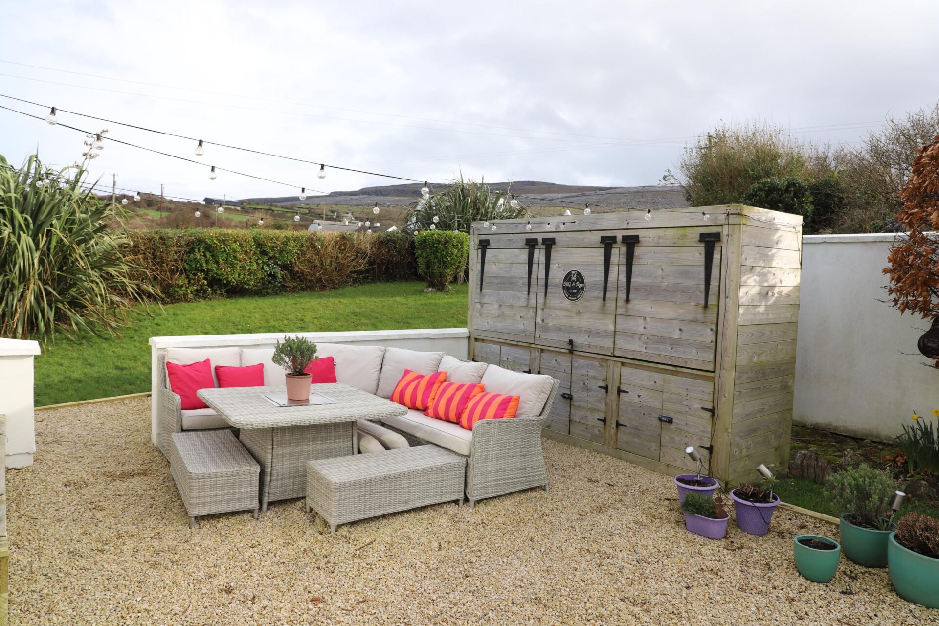 To the rear, the property truly shines with two private seating areas and an impressive outdoor kitchen space — ideal for entertaining while soaking in the surrounding views.