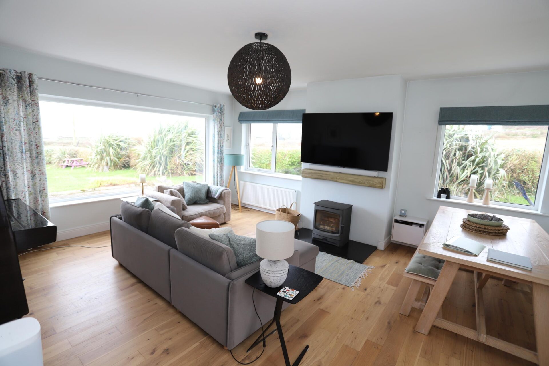 Sitting Room/Dining 4.7m x 6.2m (15'5" x 20'4") • Wooden Flooring • Wood Burning Stove • Wall Sconces